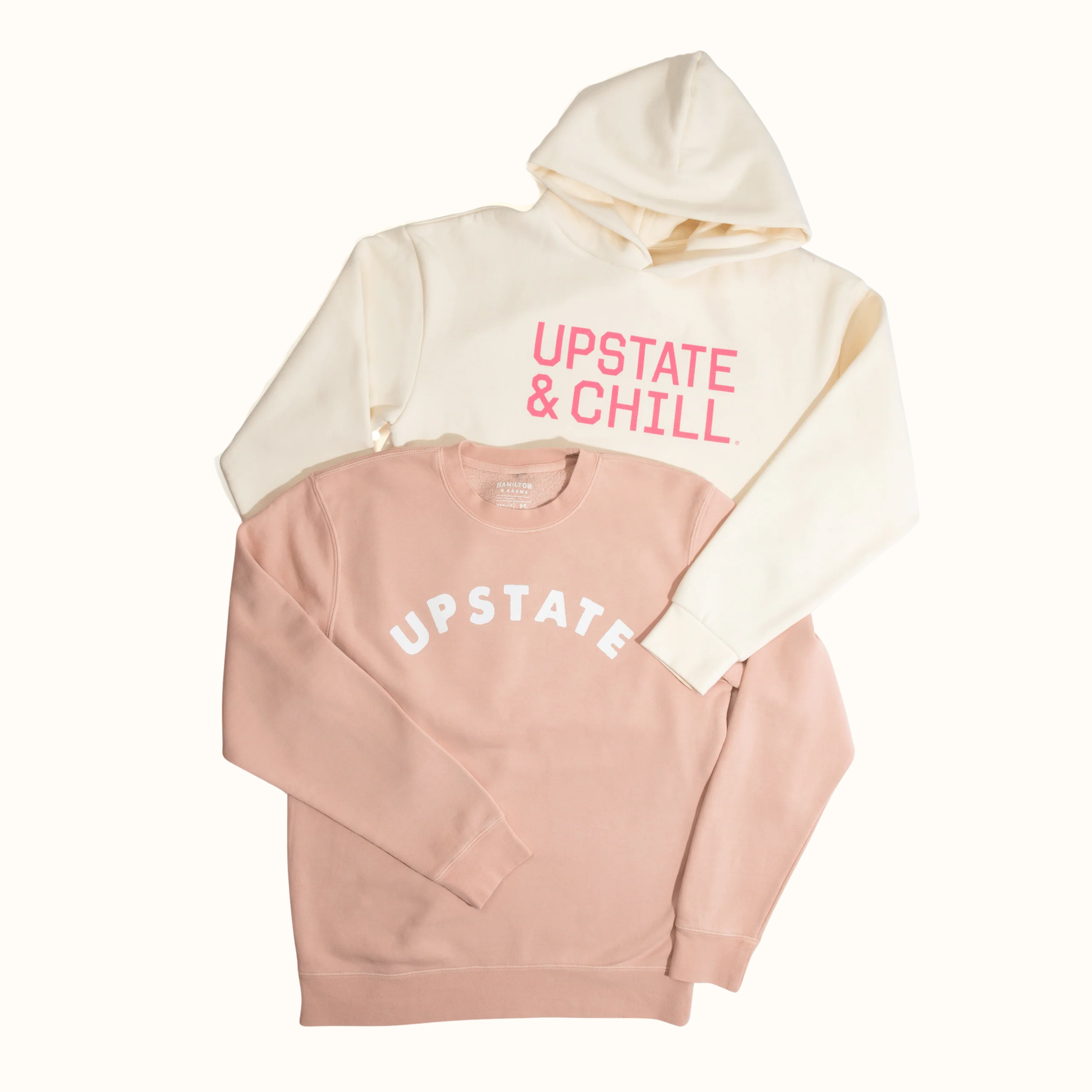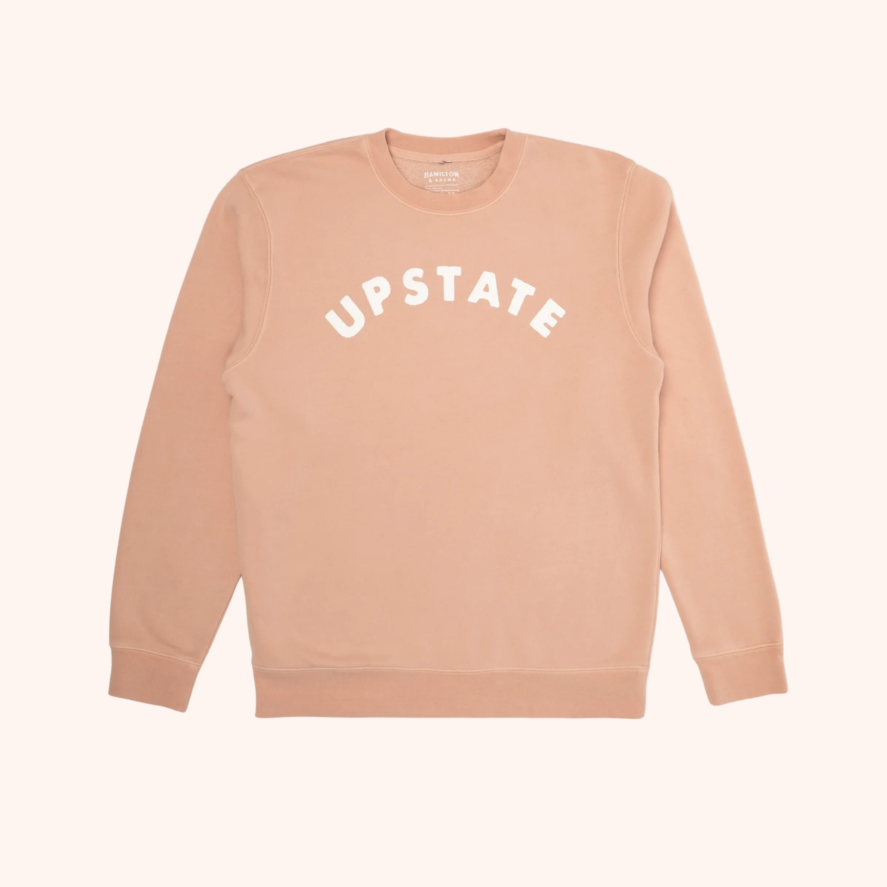 The Upstate Arch Crewneck in Pigment Dusty Pink/White brings that feeling to life. Soft, midweight brushed-back fleece keeps you cozy while the iconic Upstate & Chill arch design by Ryan Williams adds a touch of laid-back, local style. Perfect for layering on crisp mornings, relaxing at home, or hitting the trails, this crewneck blends comfort with effortless upstate vibes.